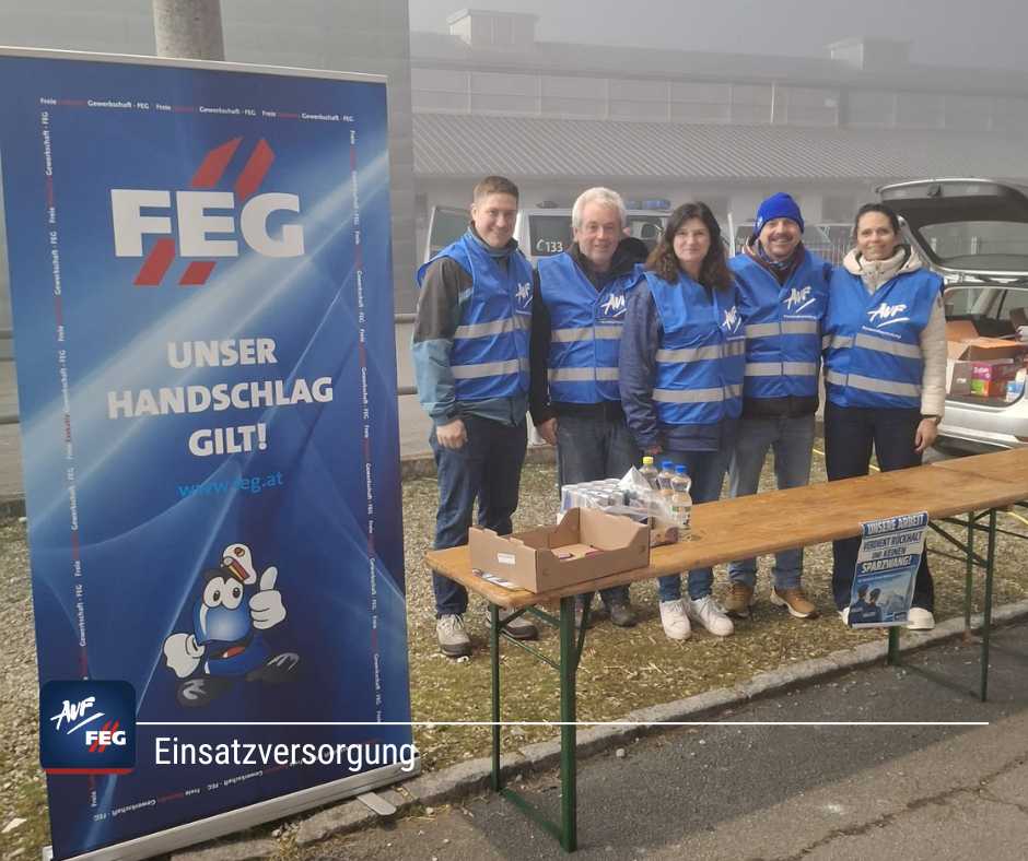 Die AUF/FEG hat heute die Kräfte beim Bundesliga-Spiel in Ried unterstützt und für ihr Wohl gesorgt. Gegen die eisige Kälte half da nur etwas Warmes.